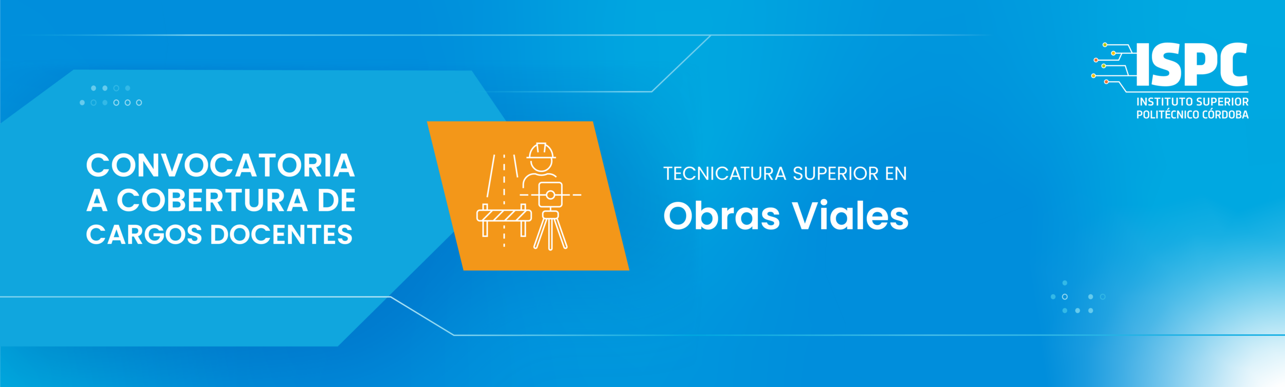 El Instituto Superior Politécnico Córdoba informa que desde el 20/02/2026 hasta el 26/02/2026 inclusive, se encontrará abierta la convocatoria a profesionales para la Tecnicatura Superior en Obras Viales.